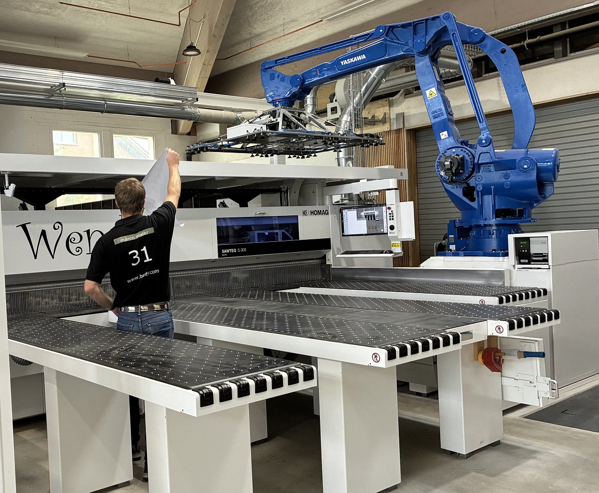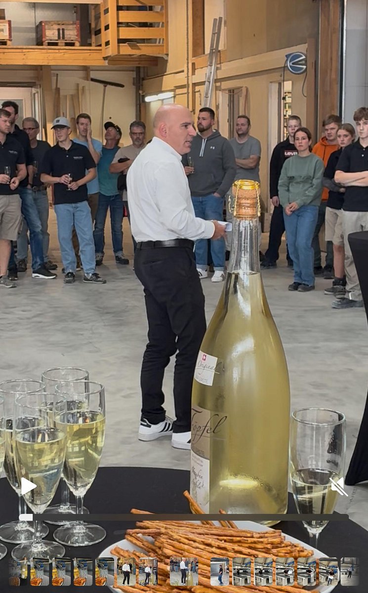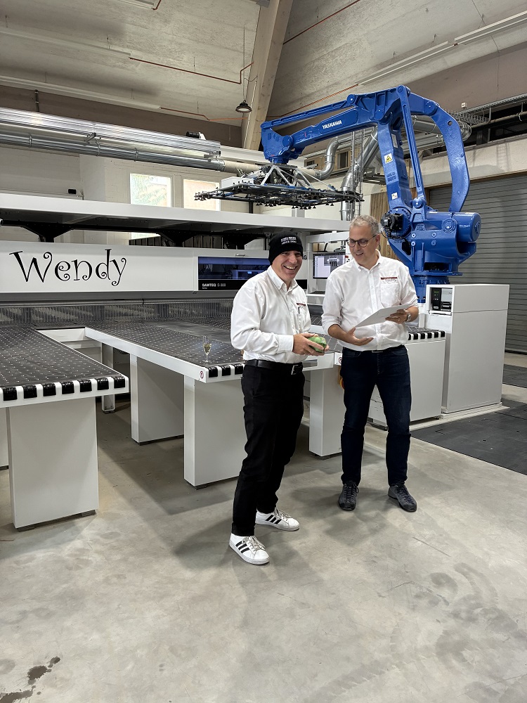 Zu Wochenbeginn starteten wir das Public Voting für den Swiss Kitchen Award – eine Einladung, gemeinsam zu zeigen, wofuer wir brennen. Am Freitag tauften wir dann unsere neue Zuschnittanlage feierlich. Wendy heißt sie nun – und wir sagen herzlich willkommen im Team! Diese Hightech-Revolution arbeitet selbstständig, doch ihre Wirkung ist greifbar: Höchste Präzision, mehr Effizienz und ein klarer Schritt Richtung Nachhaltigkeit. Dank automatisiertem Lager- und Restenmanagement wird jeder Plattenschnitt optimiert, und übrigbleibende Holzreste verwandeln sich in Hackschnitzel für unseren Wärmeverbund.