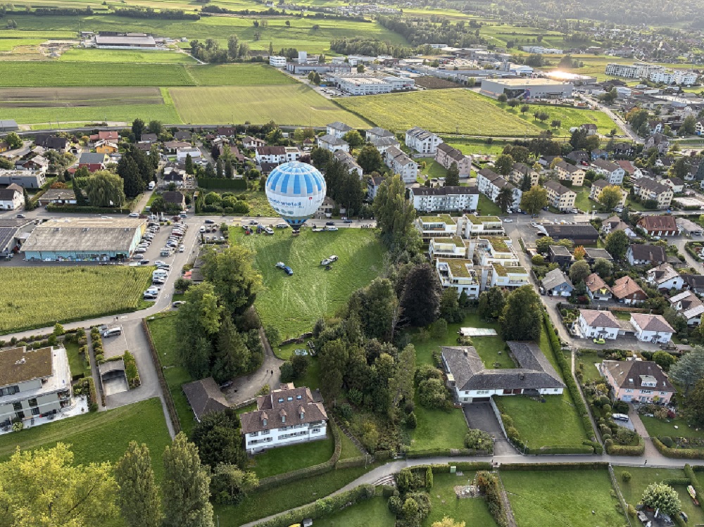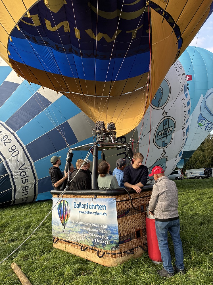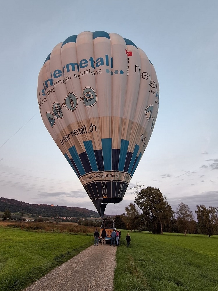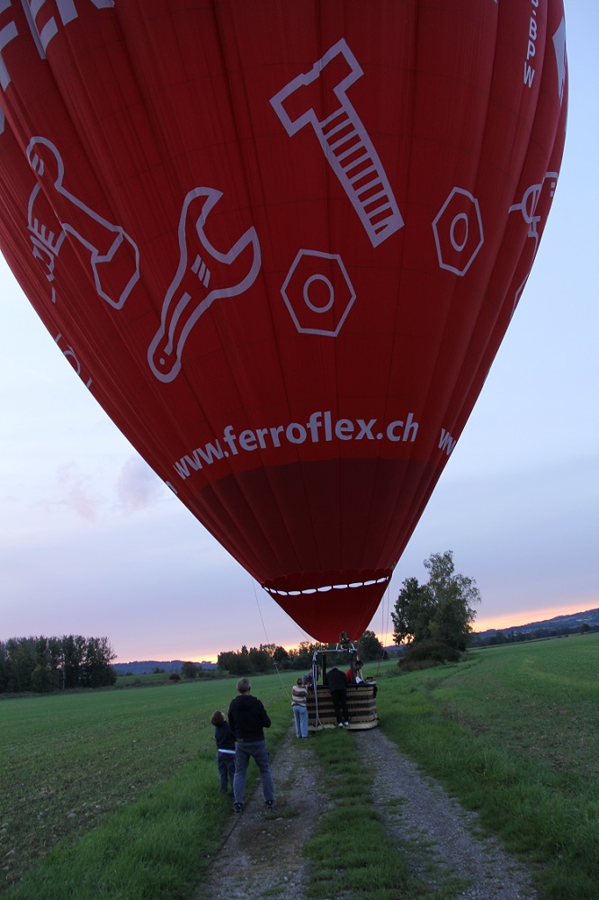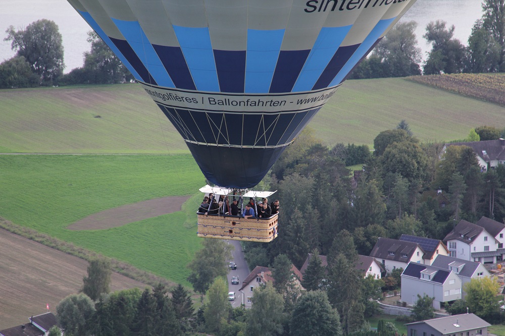 Anschliessend an die Taufe hat der Firmeninhaber Oliver Bantli anlässlich seines 50. Geburtstages das gesamte Team zu einer Heissluftballonfahrt eingeladen. Bereits der Aufbau und Start der 5 riesigen Ballone war ein Spektakel für sich. Jeder half mit und zusammen konnten wir dann alle - ein Ballon nach dem anderen - unseren Höhenflug antreten. Perfekte Bedingungen; die Weite des Himmels und das vertraute Terrain unter uns - eine wunderbares Erlebnis. So durften wir unsere schöne Gegend diesmal aus der Vogelperspektive betrachten und geniessen. Ein unvergessliches Abenteuer...