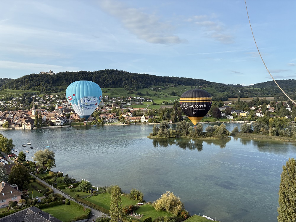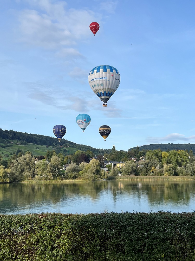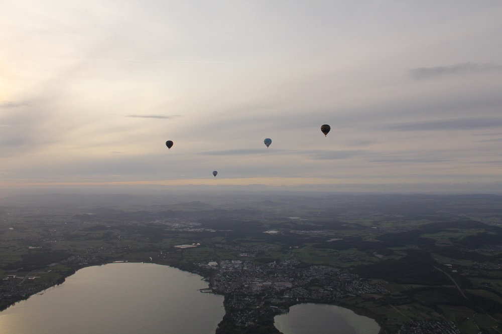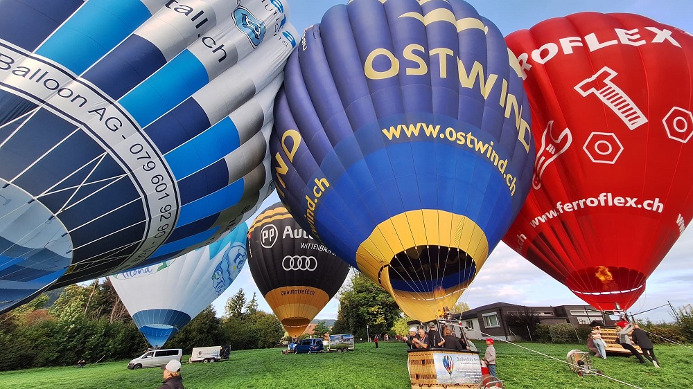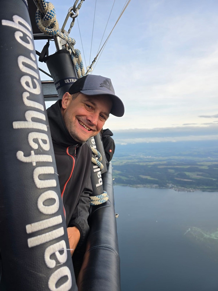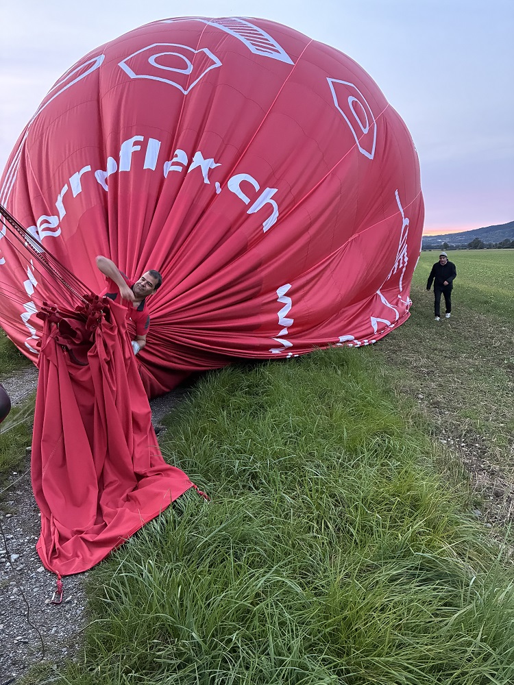 Anschliessend an die Taufe hat der Firmeninhaber Oliver Bantli anlässlich seines 50. Geburtstages das gesamte Team zu einer Heissluftballonfahrt eingeladen. Bereits der Aufbau und Start der 5 riesigen Ballone war ein Spektakel für sich. Jeder half mit und zusammen konnten wir dann alle - ein Ballon nach dem anderen - unseren Höhenflug antreten. Perfekte Bedingungen; die Weite des Himmels und das vertraute Terrain unter uns - eine wunderbares Erlebnis. So durften wir unsere schöne Gegend diesmal aus der Vogelperspektive betrachten und geniessen. Ein unvergessliches Abenteuer...