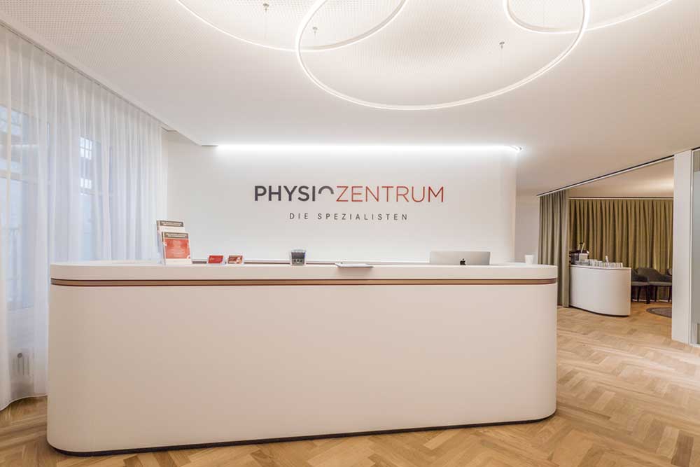 Klare Formen und Linien gepaart mit Holz und weichen Lichtelementen bilden die Grundlage des Gesamtkonzeptes für dieses Gesundheitszentrum.
