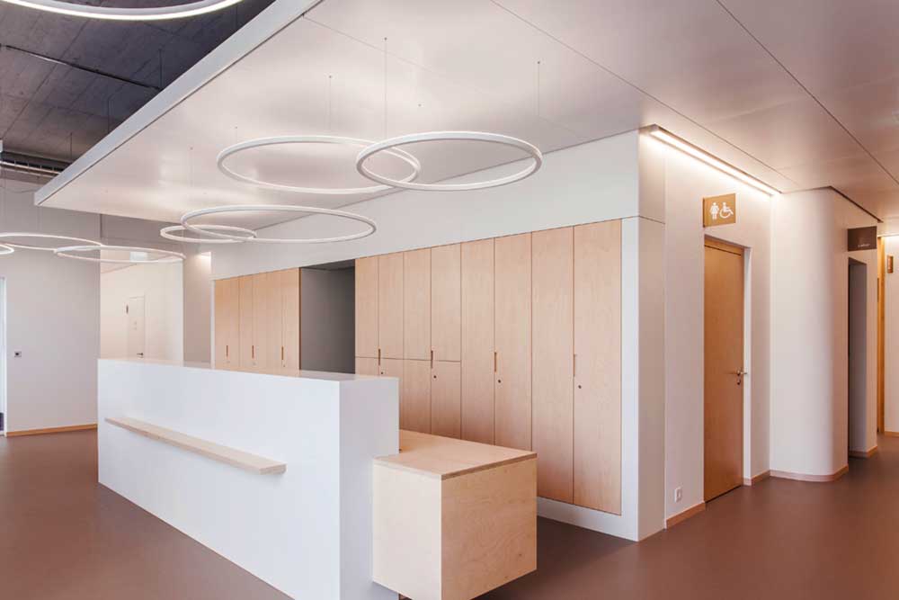 Arztpraxen und Gesundheitszentren sind Anlaufstellen für Hilfesuchende und müssen Patienten und Angehörigen Sicherheitsgefühl vermitteln. Auch wenn hier hygienisch und steril gearbeitet wird, dürfen die Räume einladend, modern und offen wirken. Der Werkstoff Holz bietet hier vielerlei Möglichkeiten.