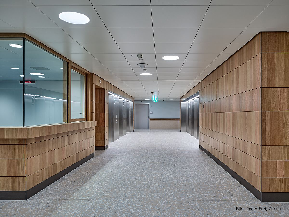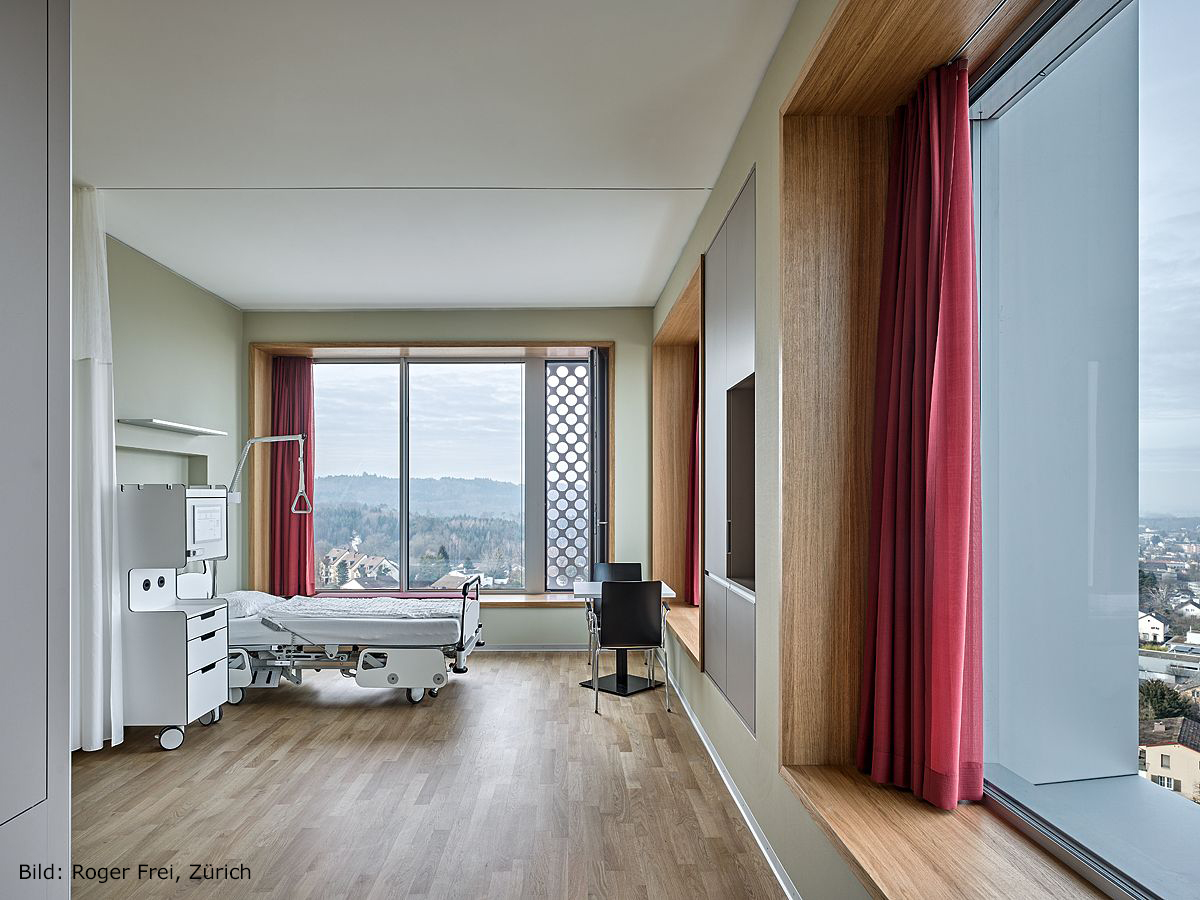 Durchdachte Strukturen und viel Liebe zum Detail zeichnen das Spital Frauenfeld und dessen Patientenzimmer aus. Ebenso wird mit immer den selben Materialien ein Stil geschaffen, der sich durch das gesamte Spital zieht und ein Wohlgefühl für Patienten, Mitarbeiter und Besucher ausstrahlt.