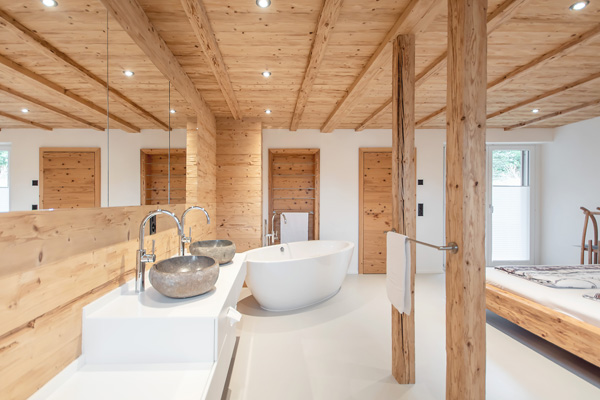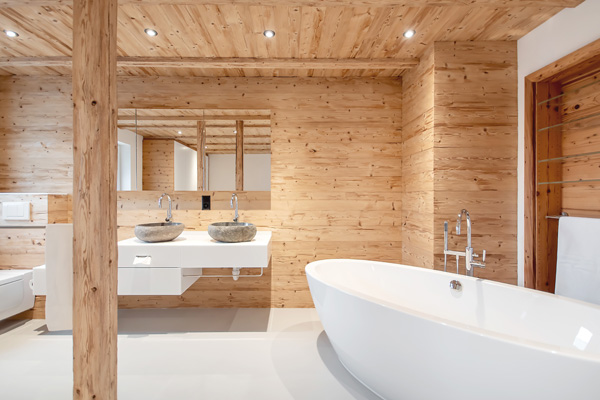 Holz bringt Wohlgefühl in Ihr Badezimmer und lässt sich beliebig mit einer Vielfalt von Materialien kombinieren.